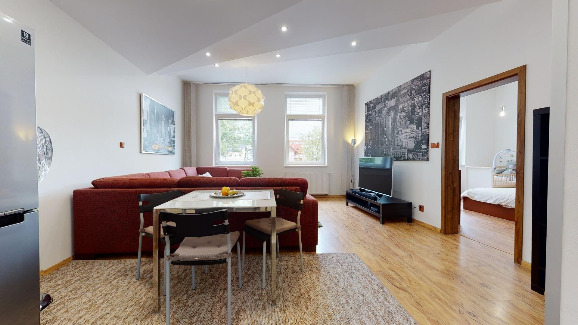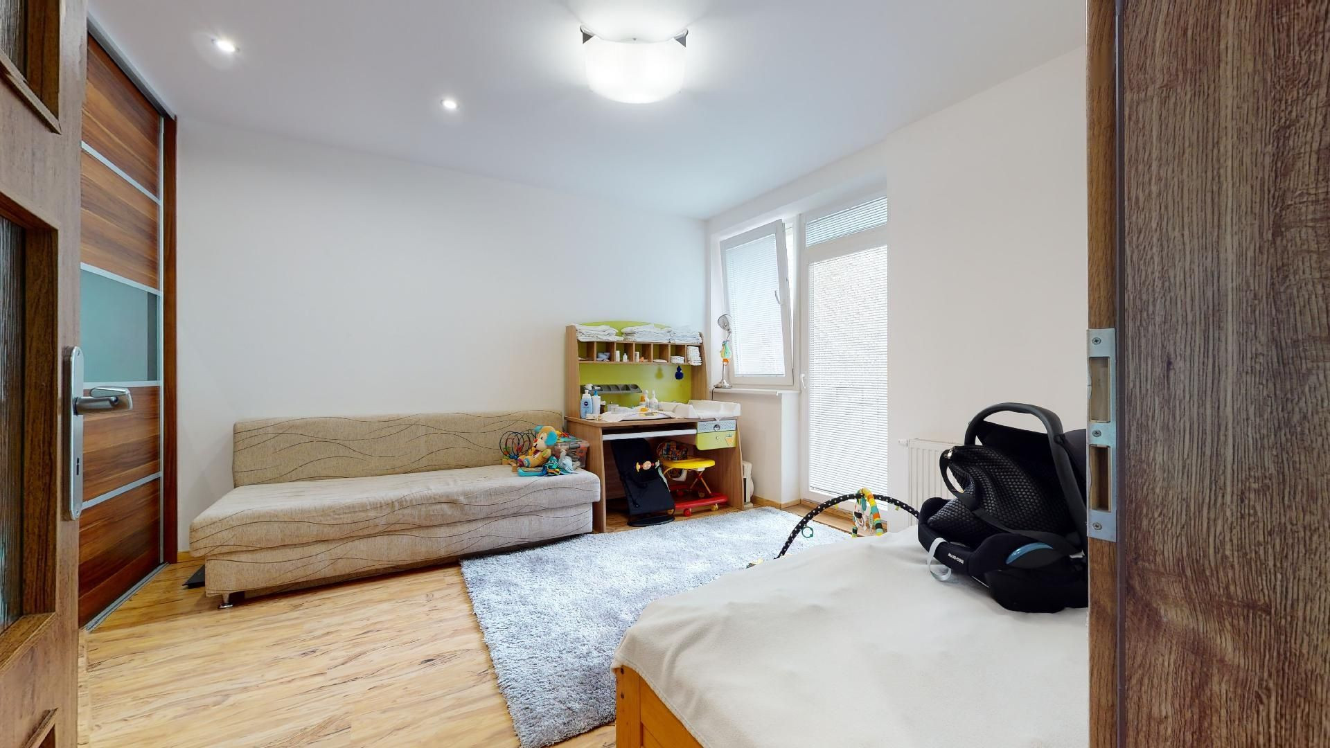 V byte sú plávajúce podlahy, dlažba, plastové okná a bezpečnostné dvere Sherlock. Kompletne vybavená kuchyňa, kúpeľňa so sanitou, vstavané skrine a nábytok.