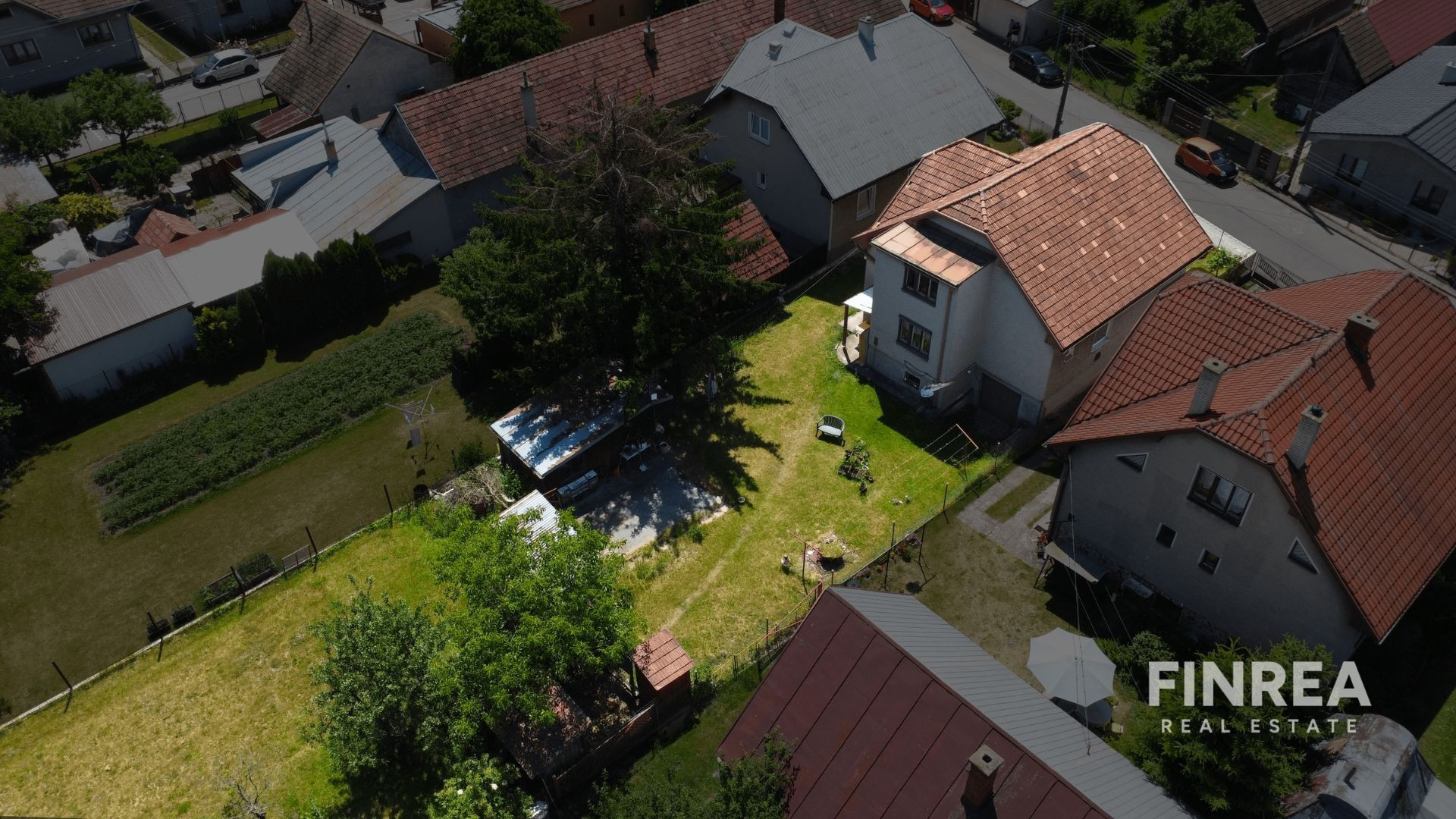 Na pozemku sa nachádza aj záhradný domček, ktorý je ideálny na odkladanie náradia alebo ako priestor na relax. Okolie domu je tiché a rovinaté, vhodné pre rodinný život.