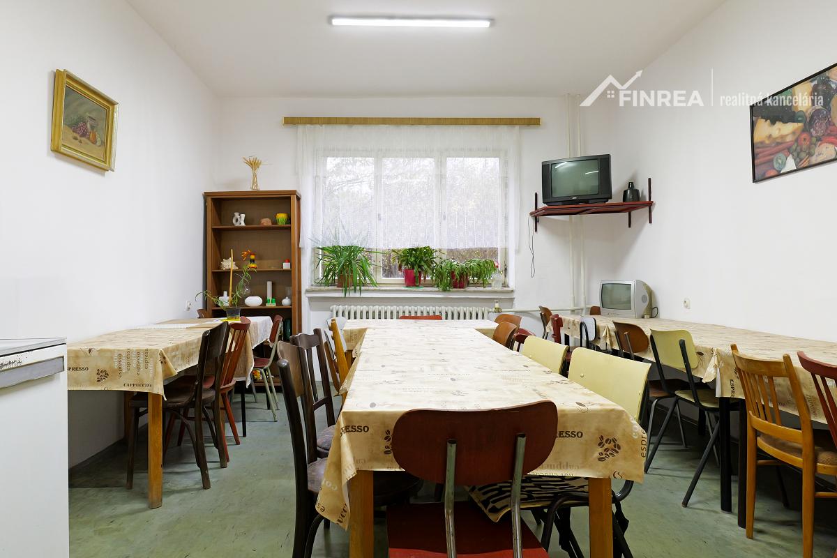 Dvojpodlažná budova momentálne zariadená ako ubytovňa s kapacitou 60 miest a príslušné prevádzkové priestory, kancelárie, sklady.