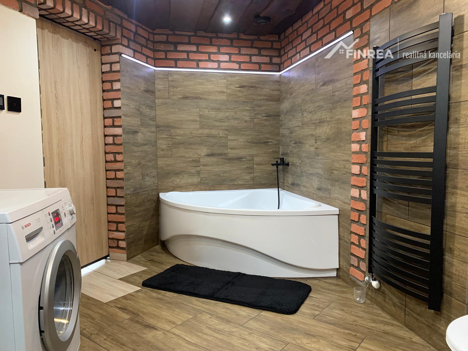 Plne vybavená kúpeľňa s vaňou, sprchovým kútom, WC, stropným odvetrávaním a senzorovým osvetlením,