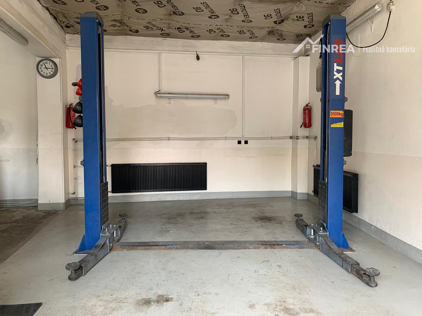 Kompletne zateplená dielňa pre 2 autá so zdvihákmi, montážnou jamou, betónovou podlahou, radiátorovým kúrením, WC, umývadlom a pecou na tuhé palivo.