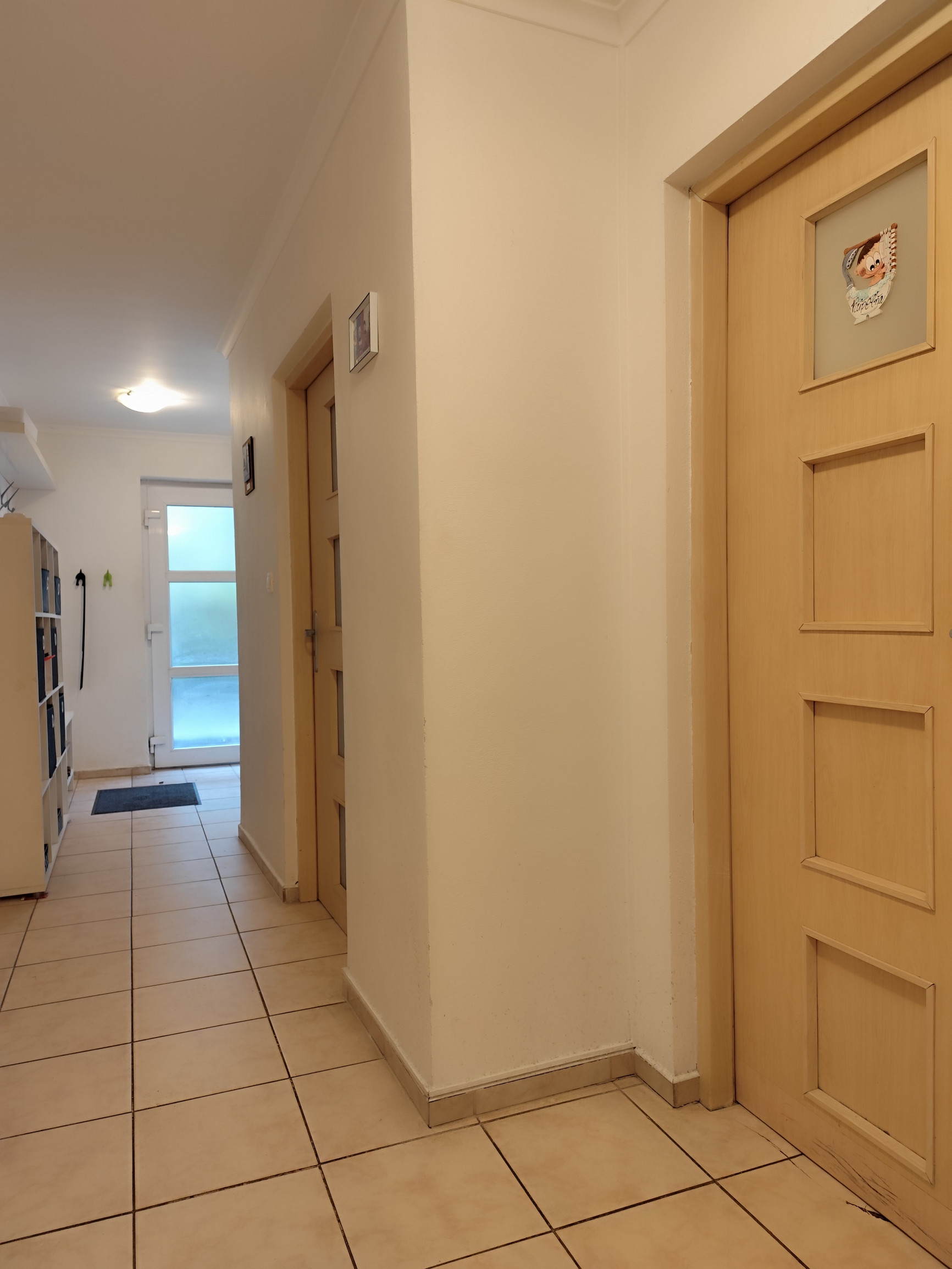 Byt pozostáva z priestrannej vstupnej chodby, samostatnej spálne, útulnej detskej izby, kúpeľne a dominantného spoločenského priestoru – kuchyne spojenej s obývačkou, z ktorej je priamy výstup na terasu a predzáhradku.