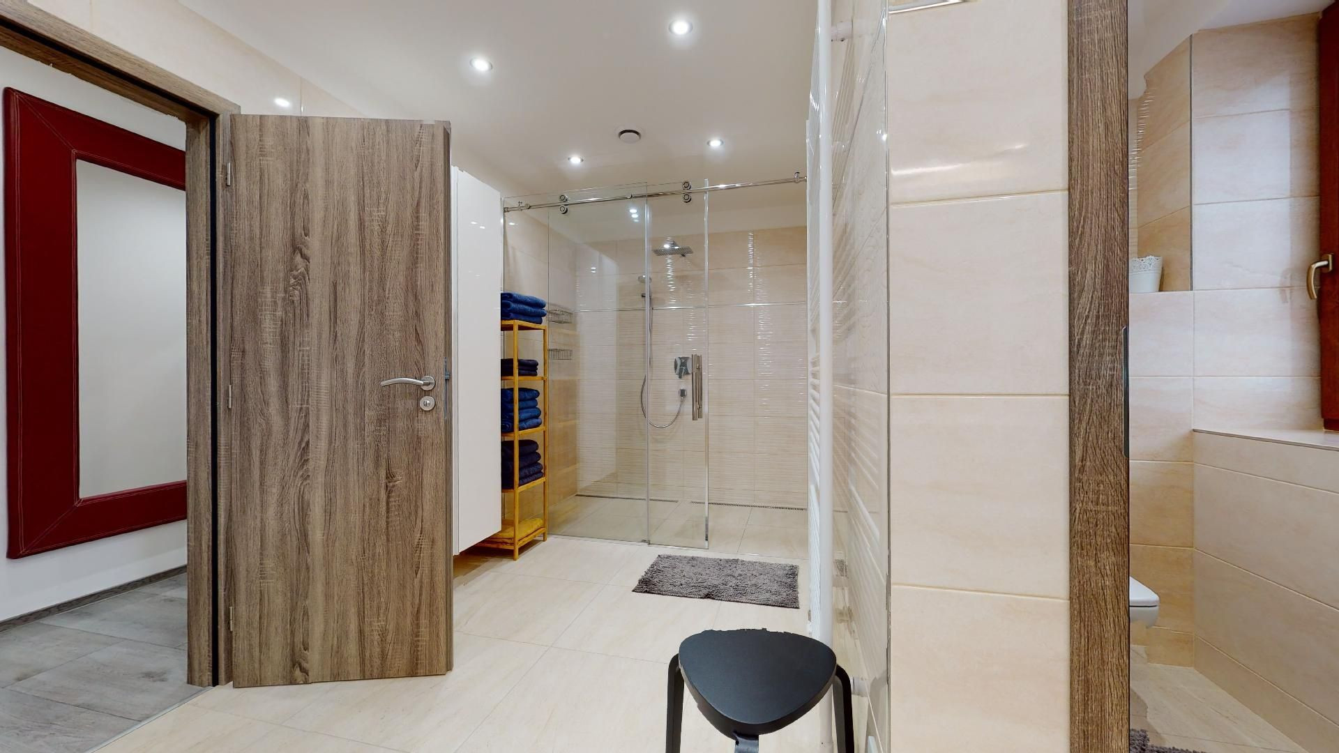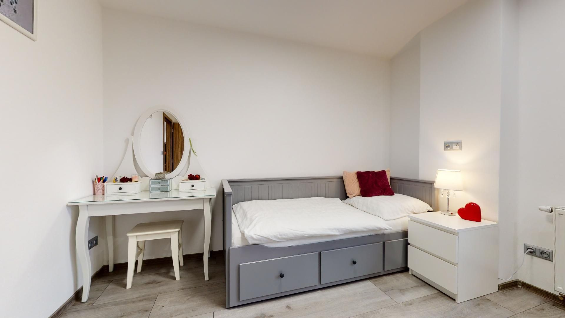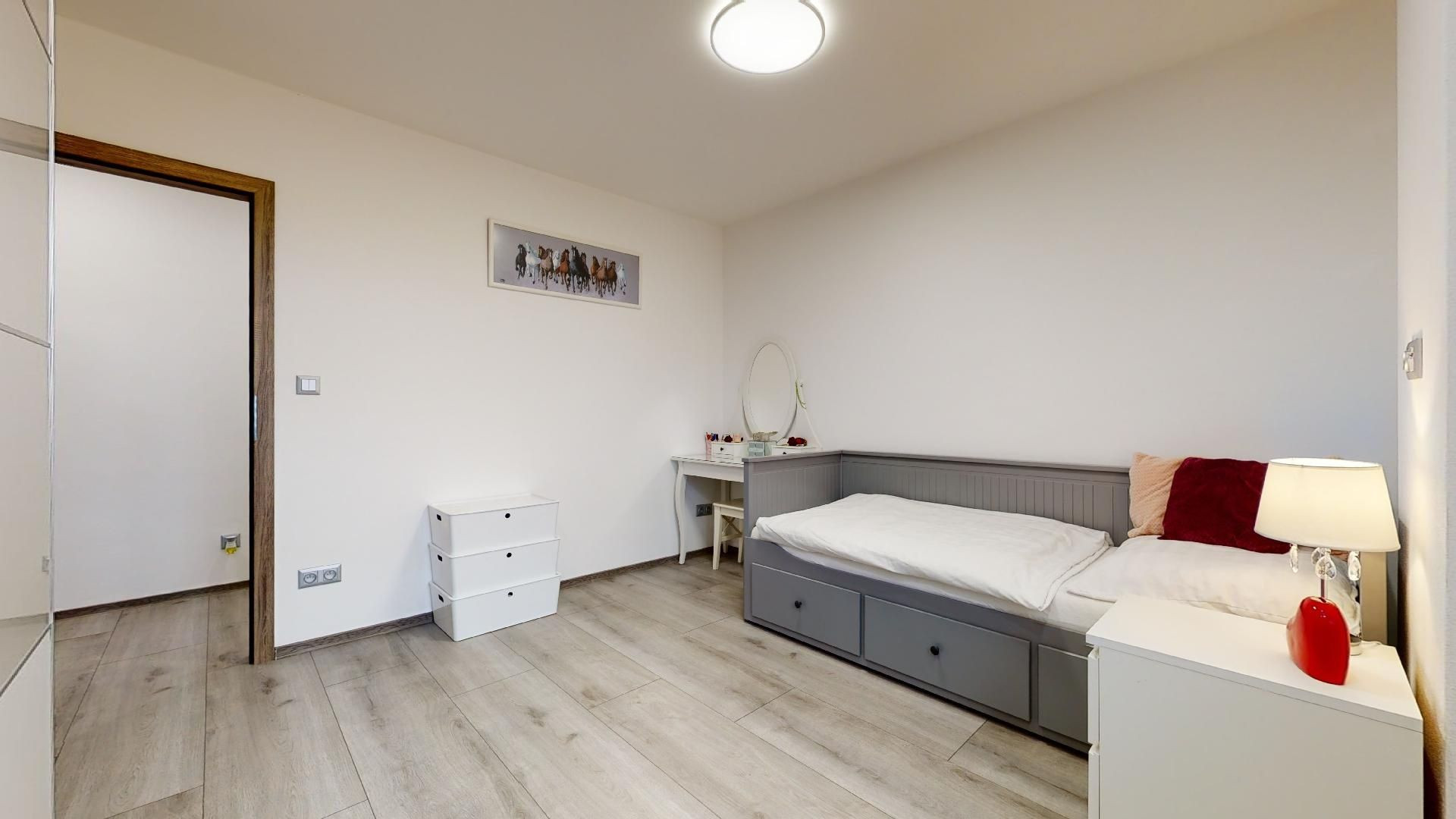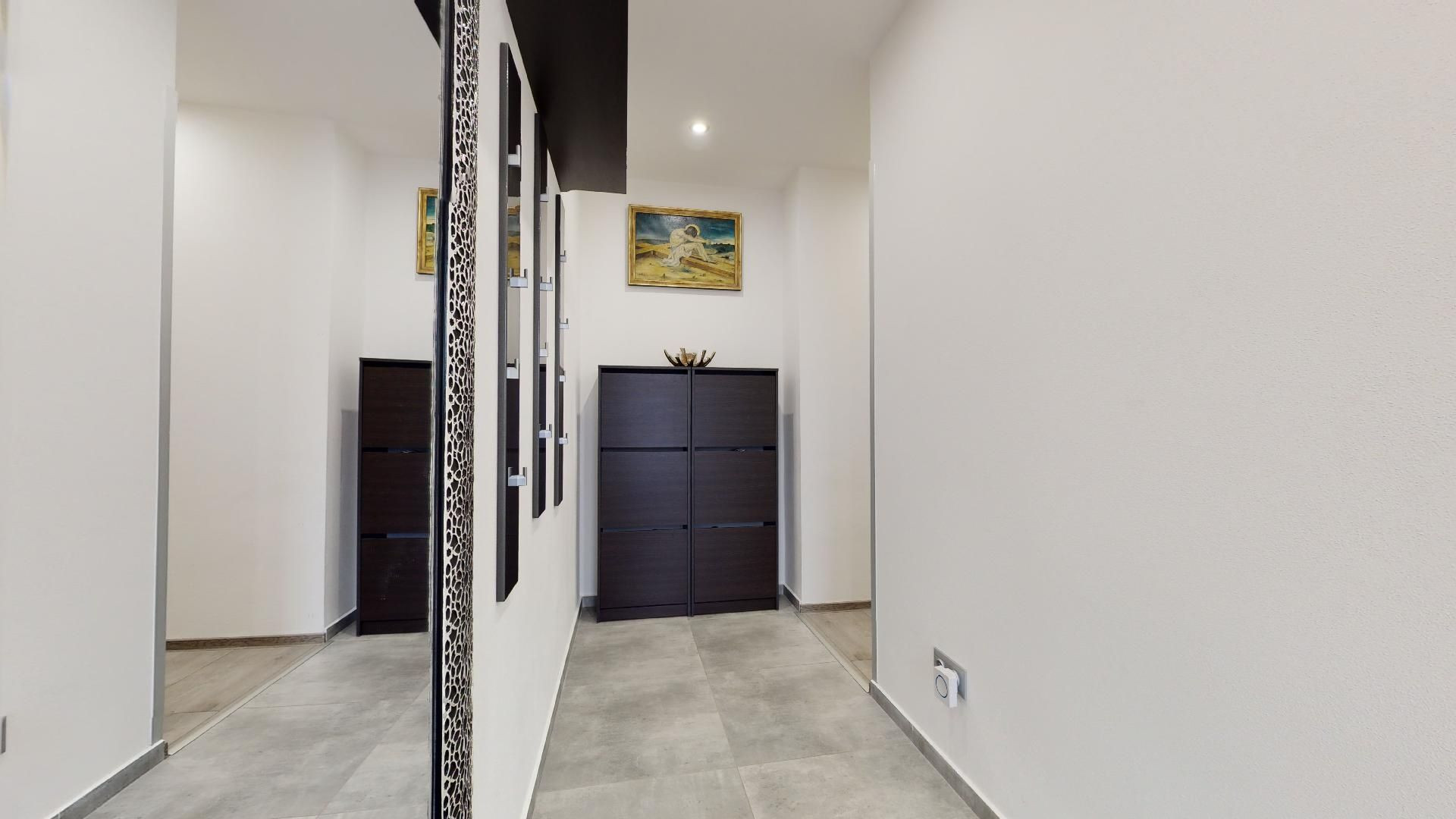 V byte sú plávajúce podlahy, dlažba, plastové okná a bezpečnostné dvere Sherlock. Kompletne vybavená kuchyňa, kúpeľňa so sanitou, vstavané skrine a komplet nábytok.