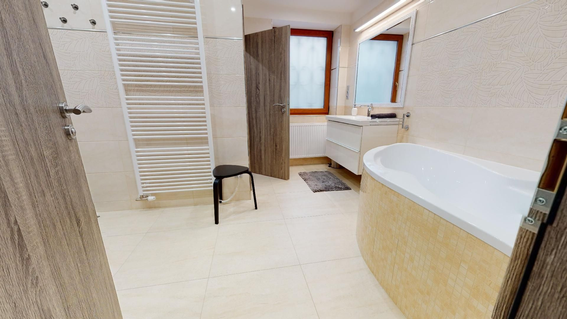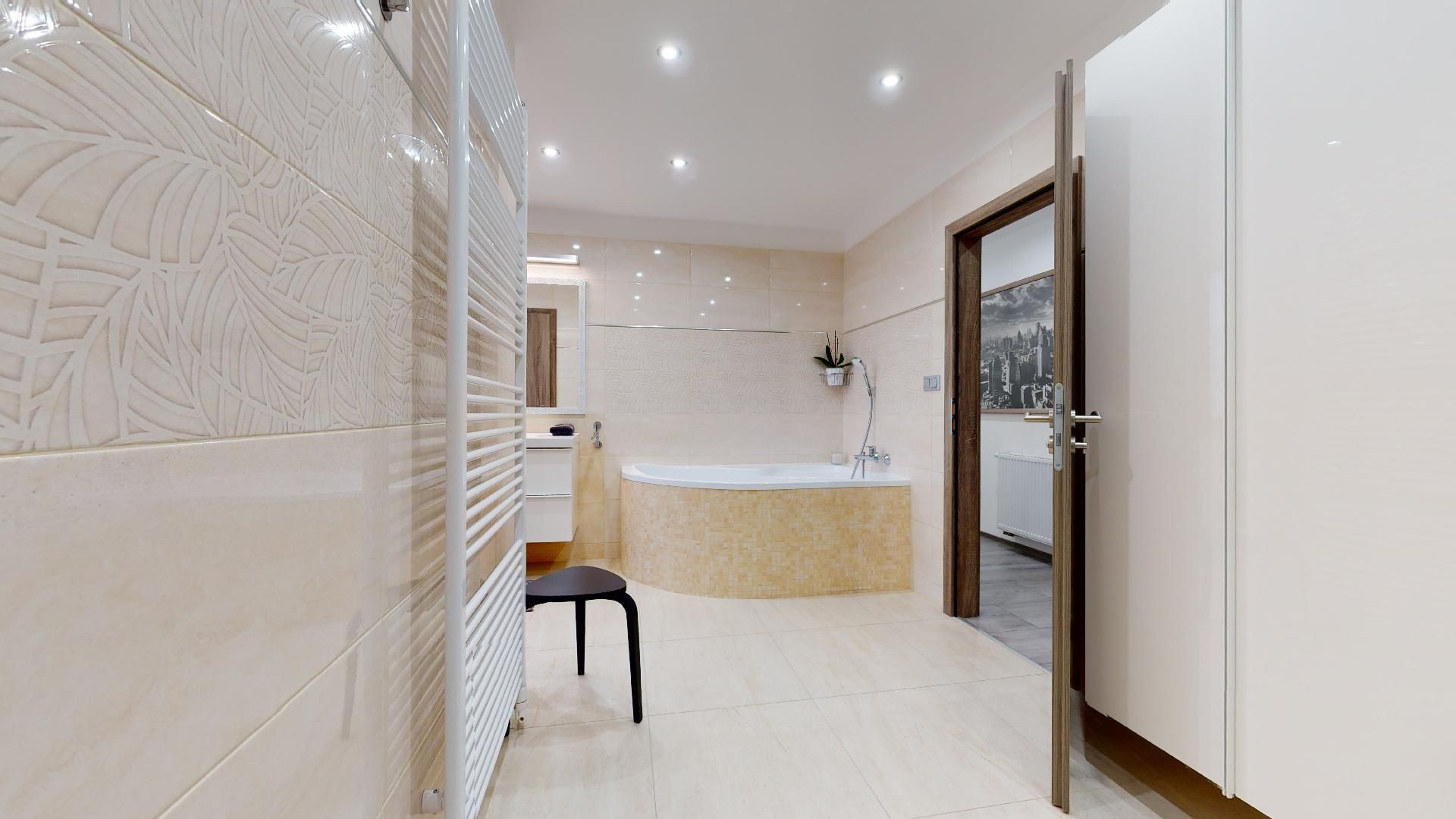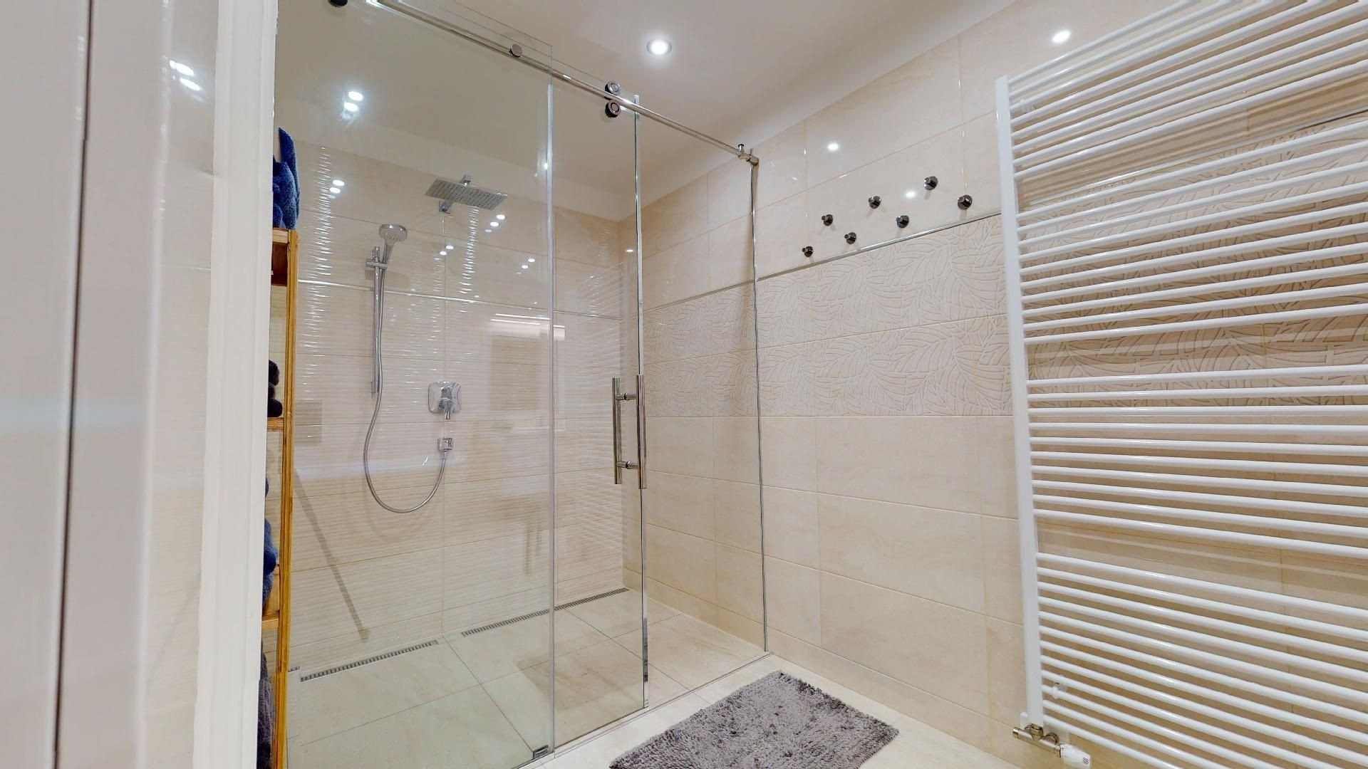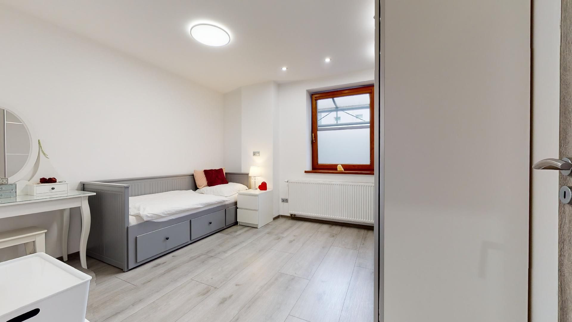 V byte sú plávajúce podlahy, dlažba, plastové okná a bezpečnostné dvere Sherlock. Kompletne vybavená kuchyňa, kúpeľňa so sanitou, vstavané skrine a komplet nábytok.