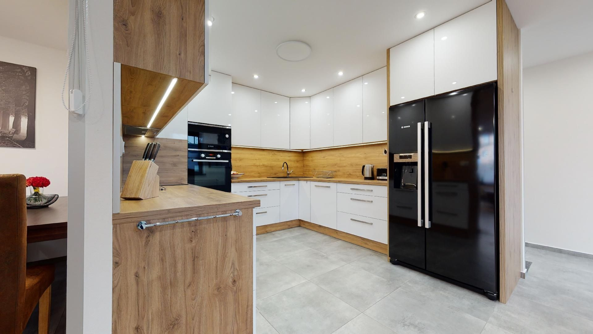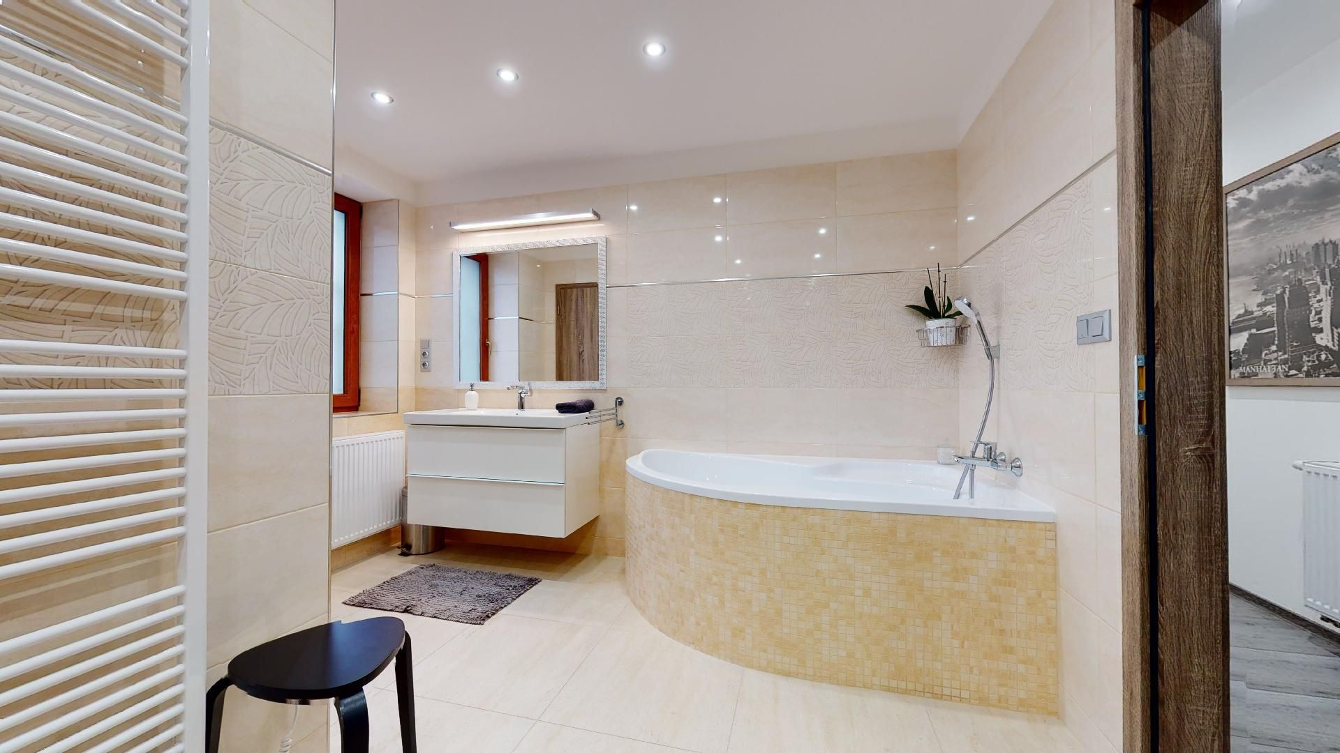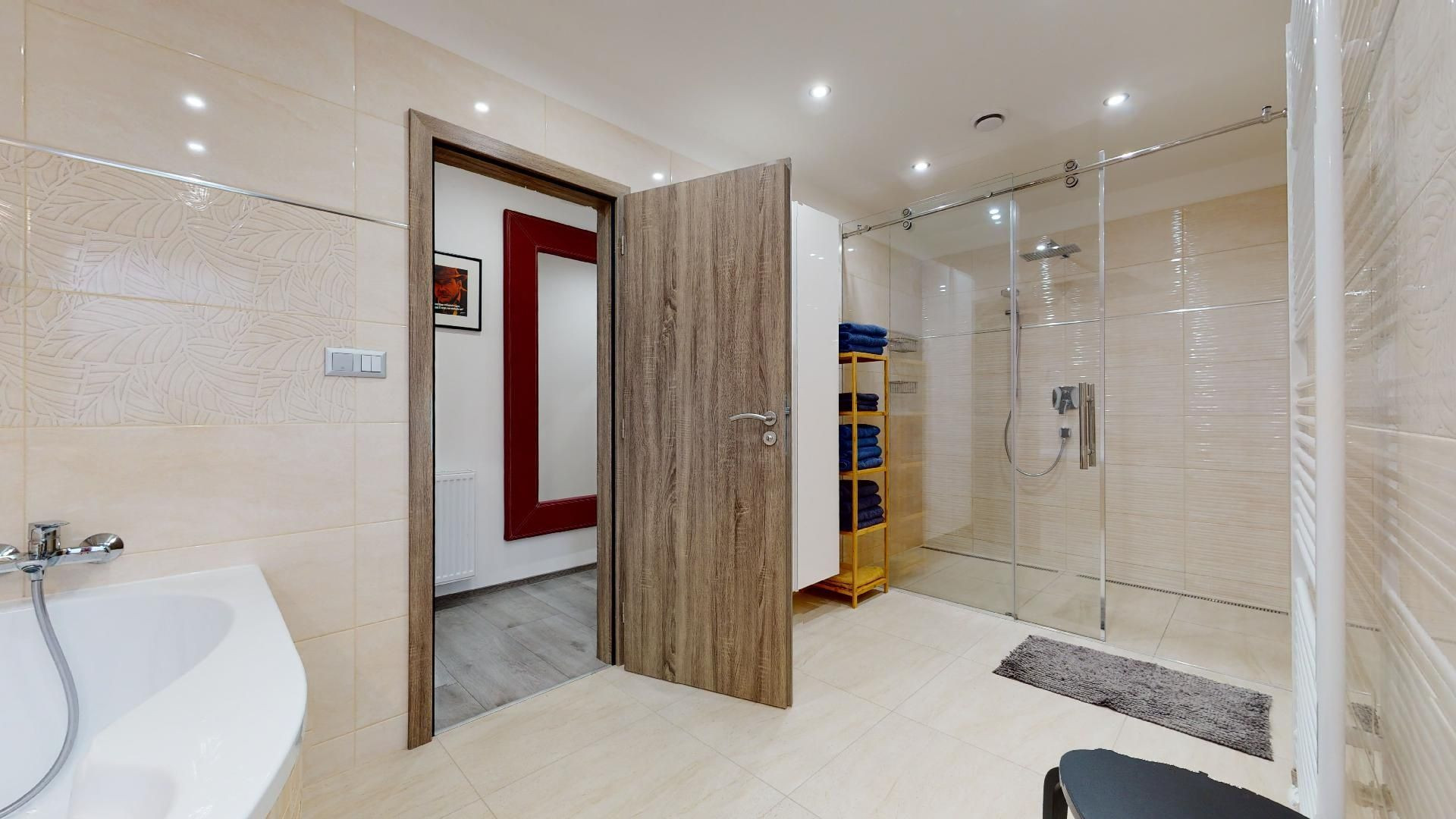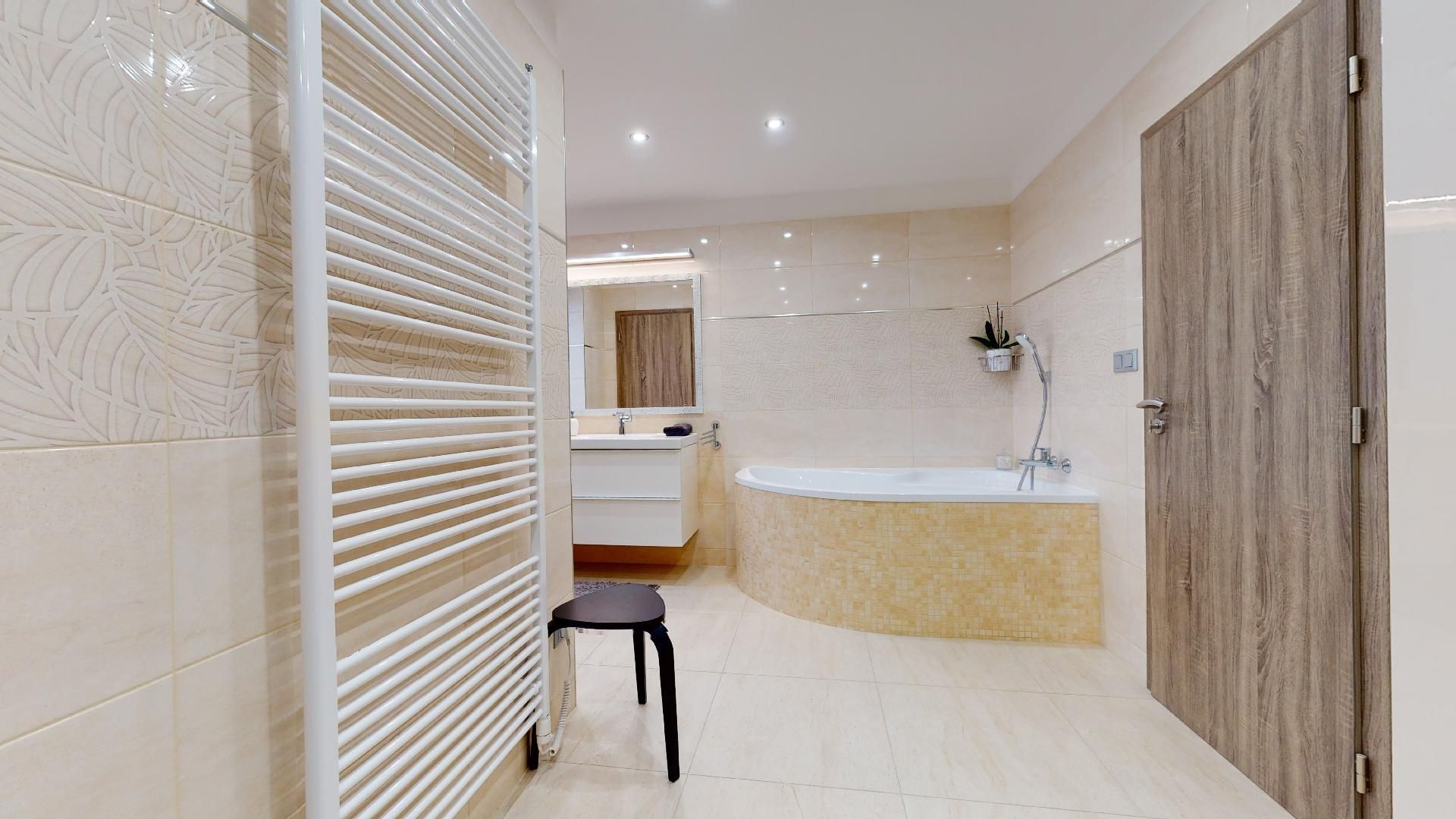 V byte sú plávajúce podlahy, dlažba, plastové okná a bezpečnostné dvere Sherlock. Kompletne vybavená kuchyňa, kúpeľňa so sanitou, vstavané skrine a komplet nábytok.