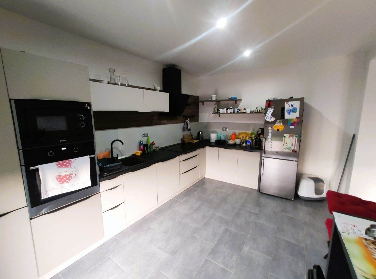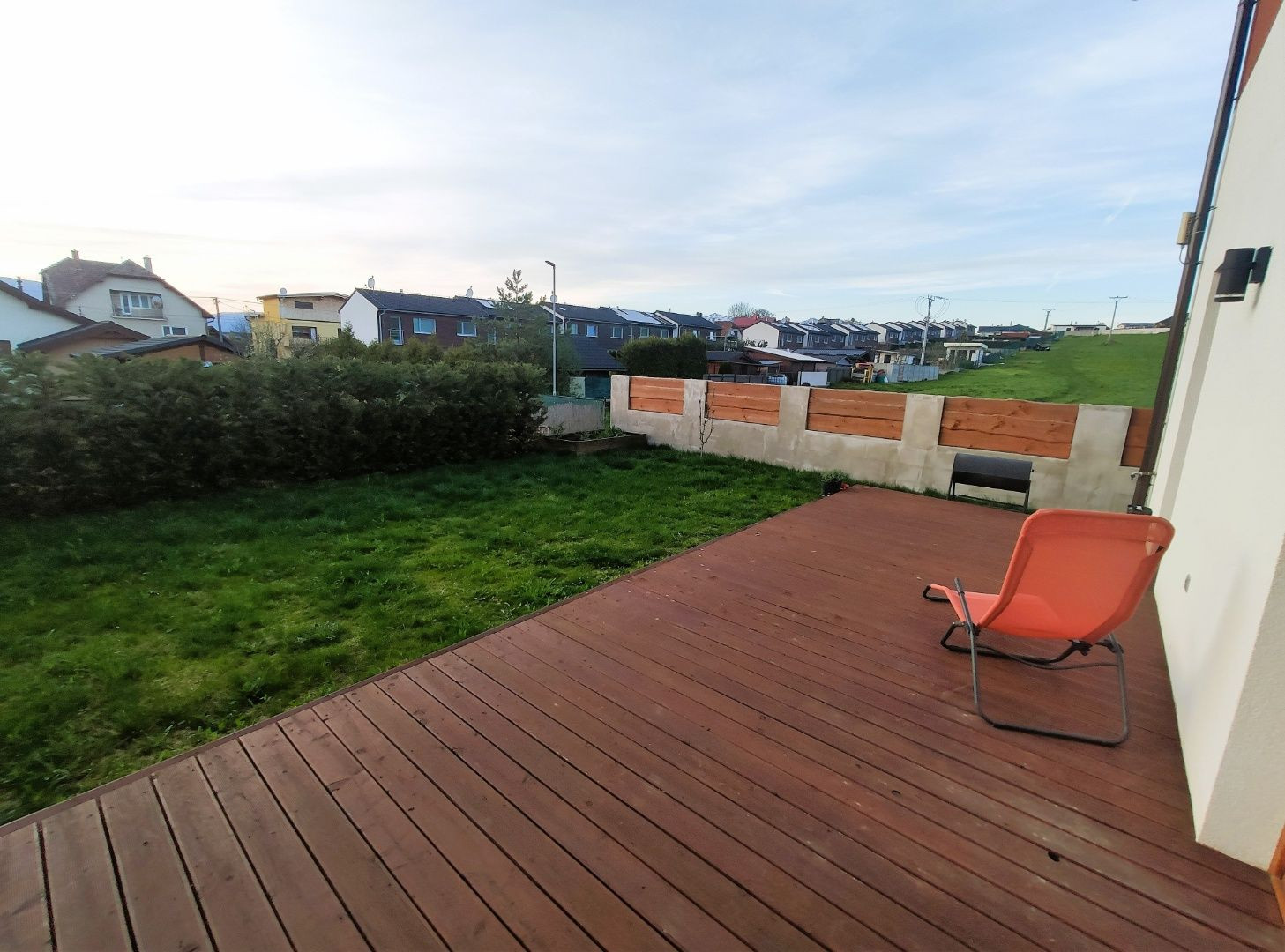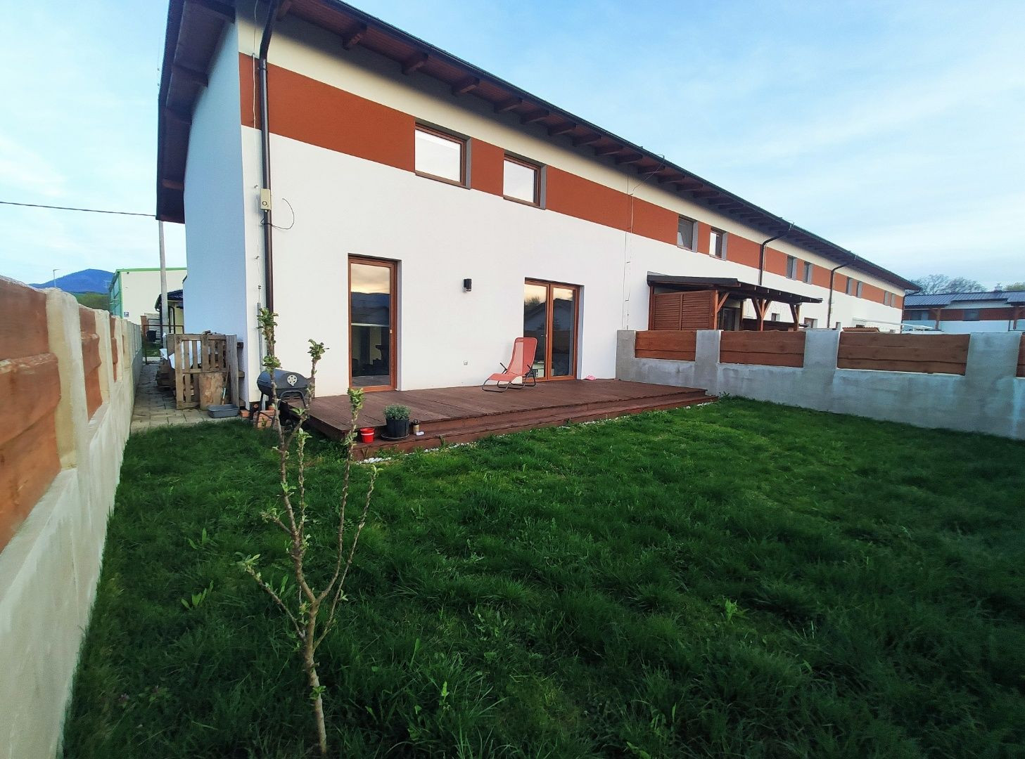 Veľkou výhodou je, že ako dom z radovky má pozemok aj popri dome, takže nie je nutné na záhradu prechádzať cez interiér.