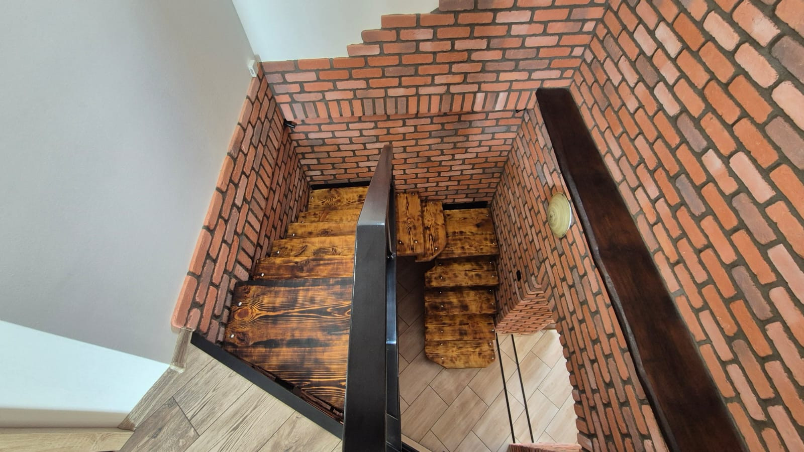 Interiér je počas celého dňa krásne presvetlený vďaka orientácii na východ, juh aj západ. Moderný charakter domu podčiarkujú dizajnové prvky, napríklad schodisko s kovovou konštrukciou a masívnym drevom v štýle spáleného dreva.