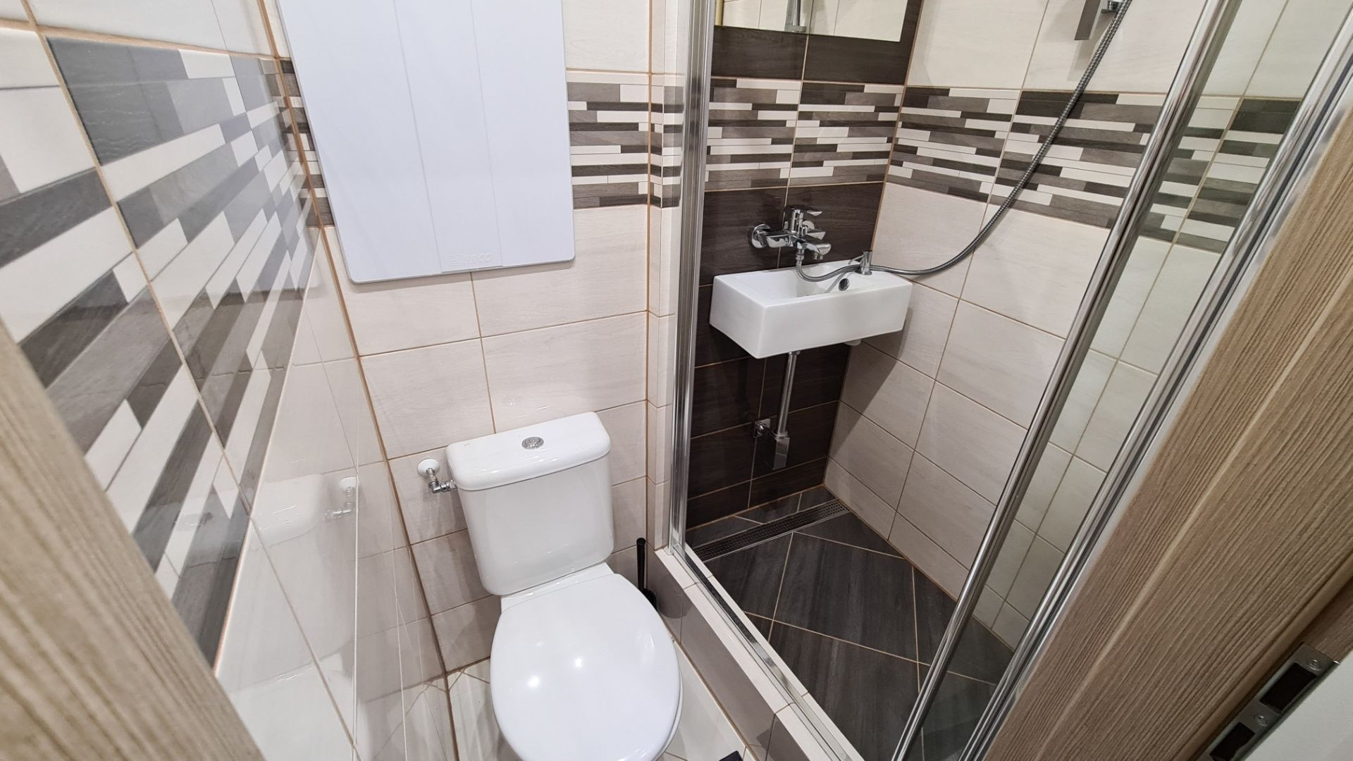 ✅ Zrekonštruovaná kúpeľňa – sprchový kút, umývadlo a WC