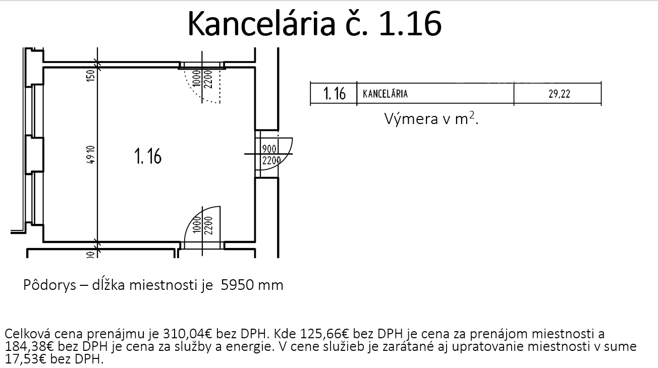 Cena prenájmu: od cca 10,61 € bez DPH / m2 / mesiac (v závislosti od typu a veľkosti priestoru)