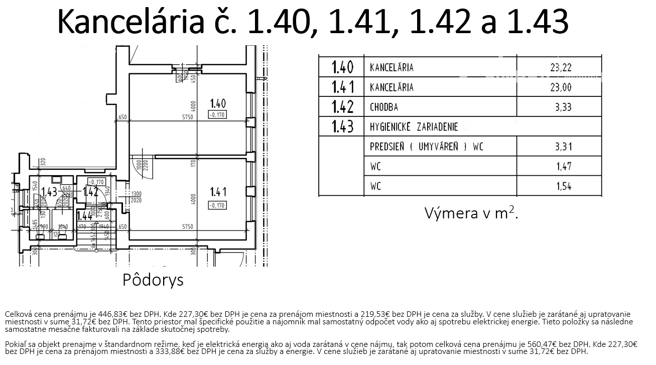 - energie a služby v cene nájmu (podľa typu priestoru)