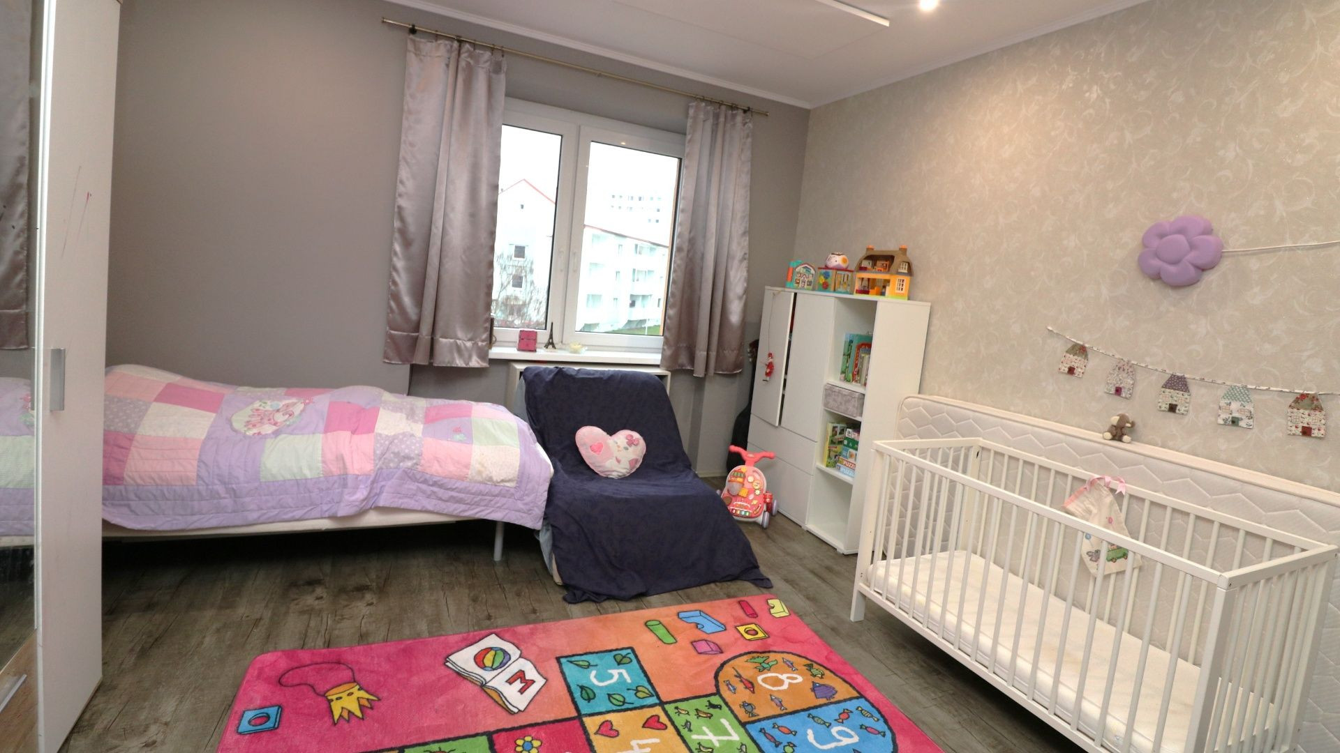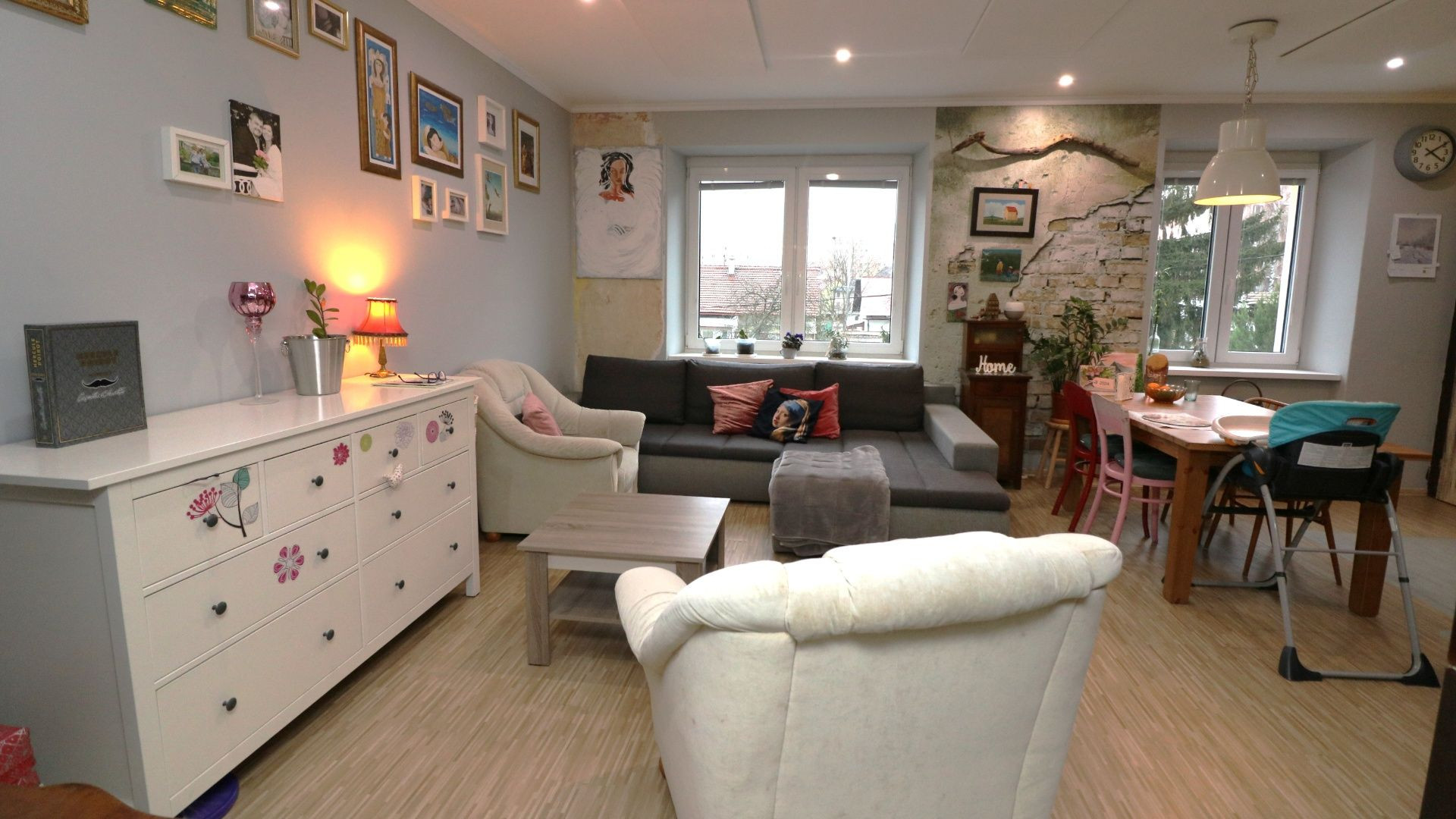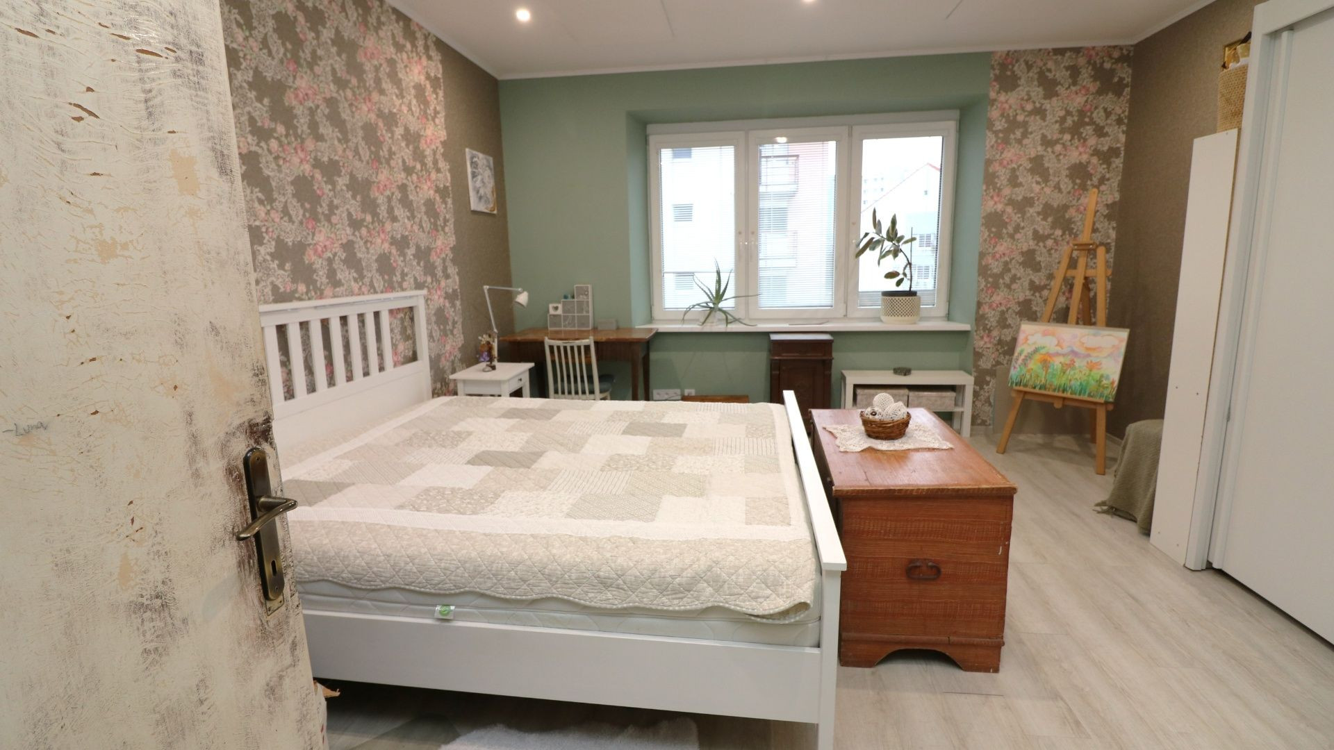 Byt sa nachádza na 2. nadzemnom podlaží tehlového bytového domu. Pozostáva z troch obytných miestností. Pri vstupe sa nachádza chodba, z ktorej je prístupná kúpeľňa s vaňou, samostatné WC a balkón. Z chodby sa vstupuje do dennej časti bytu a do spálne. Obývacia izba je prepojená s kuchyňou a jedálenskou časťou. Súčasťou kuchyne je aj špajza. Z obývacej izby je vstup do tretej izby, ktorá sa využíva ako detská izba.
